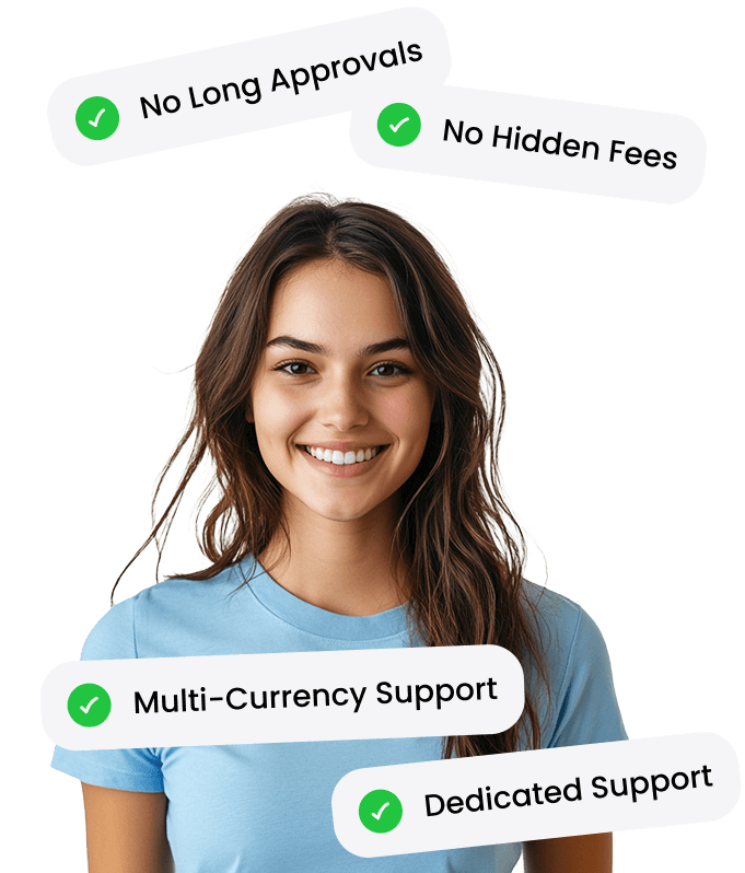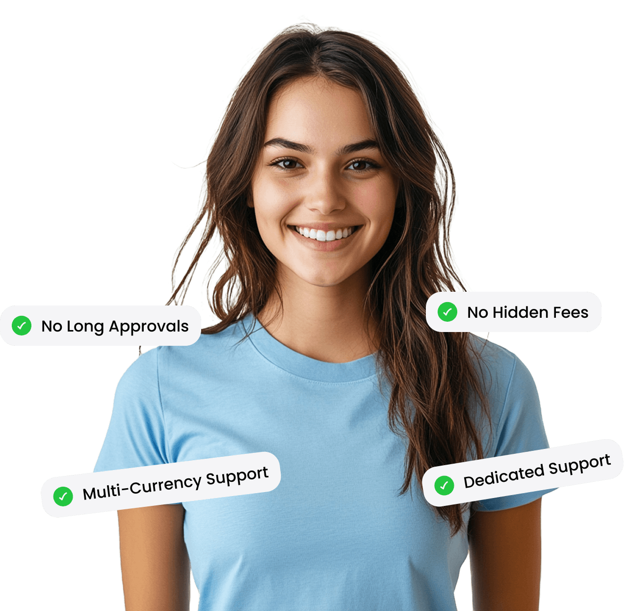 Sign up today and start accepting payments worldwide. No hidden fees, no long approvals — just seamless transactions.